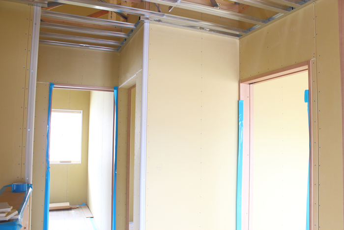 軽天工事が完了すれば、次はボード工事です。ボード工事とは、軽天工事で組み上げた下地にボードを貼り付けていく工事です。このボードも内装における下地ではありますが、この上に塗装やクロスの仕上げを行なっていくため、このボードの滑らかさがその後の装飾性・美観性に影響する重要な工事となります。